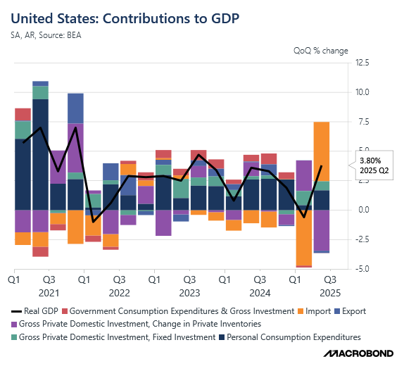 Although we are not a big fan of GDP due to its lagging nature and a lot of revisions, we would like to draw your attention to the volatility in the GDP data due to the trade data in the last two quarters.