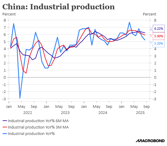 In the East, Chinese Industrial Production is off its peak and has fallen to nearly a 12-month low.
