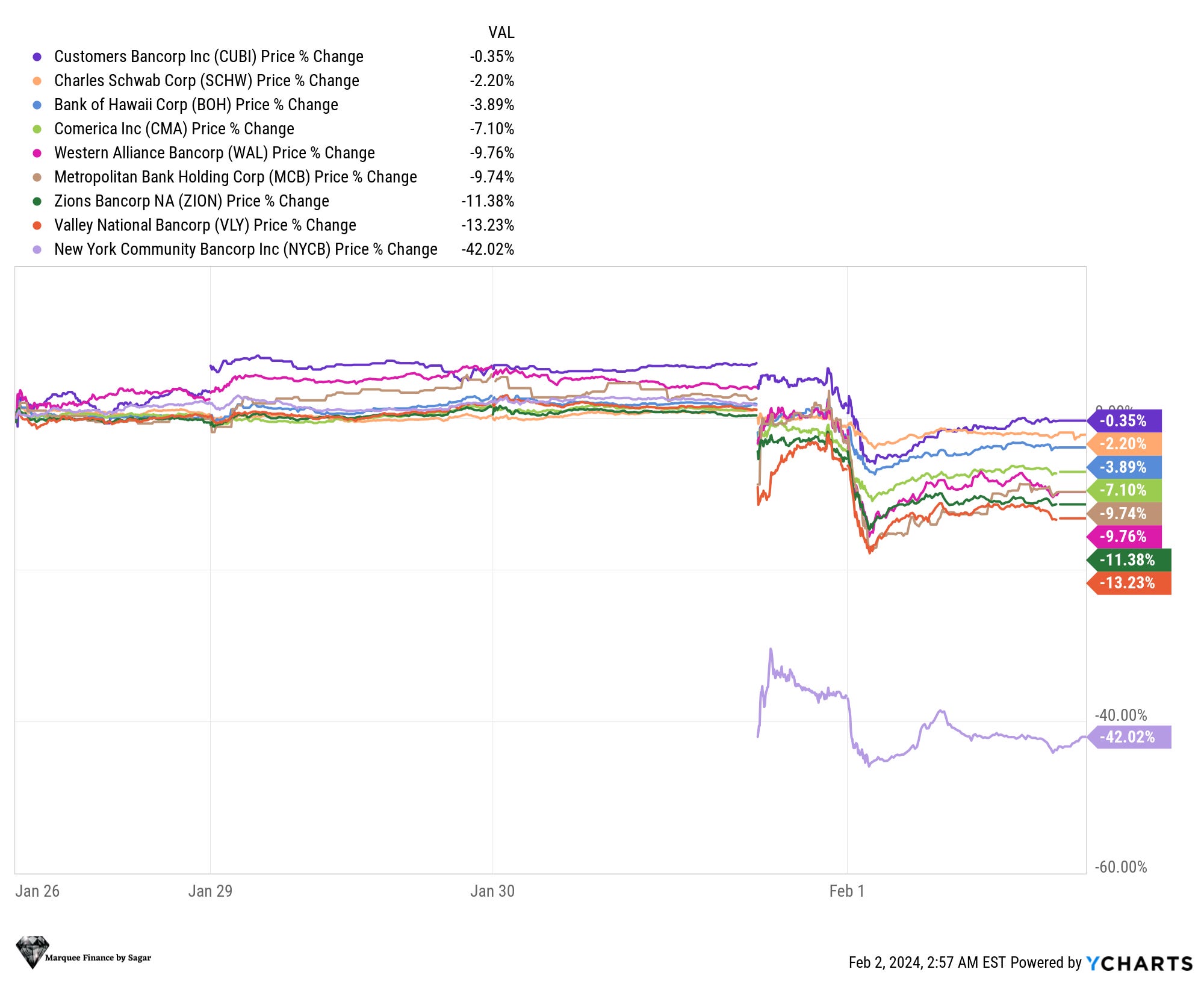 However, despite markets pushing back rate cuts, bonds rallied as the regional bank sell-offs accelerated after the shocker from NYCB.