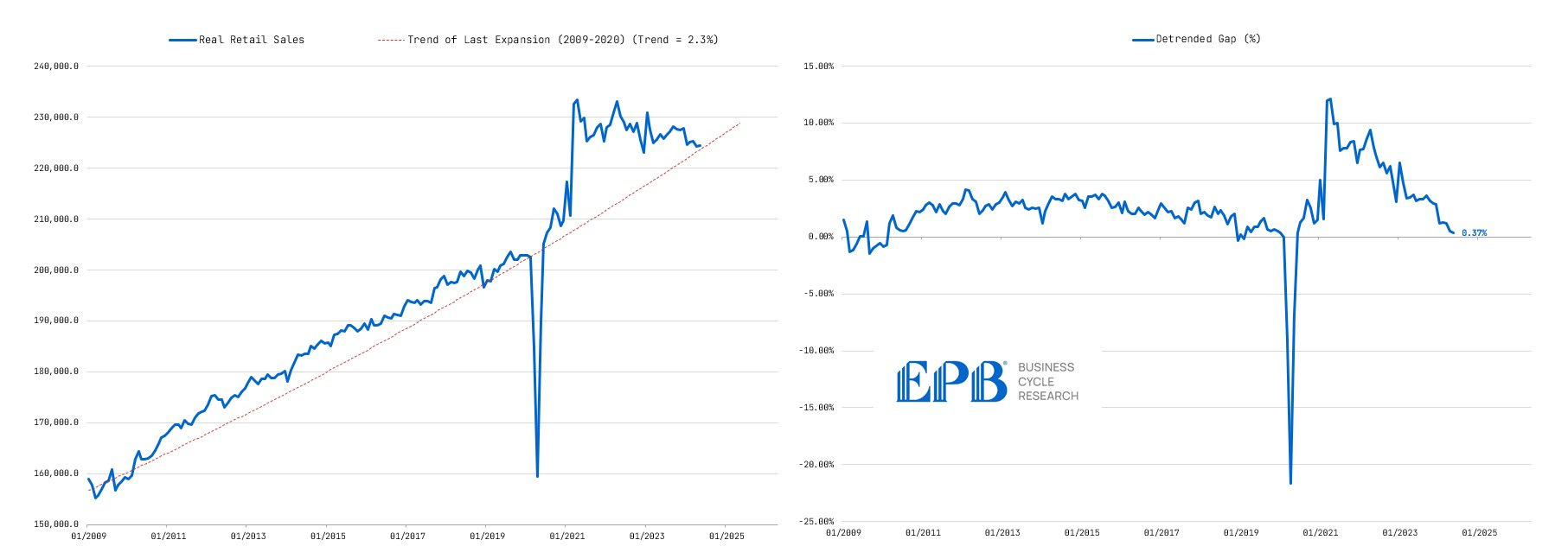 Due to the inherent weakness in real retail sales, they have now normalised back to the pre-COVID trendline.
