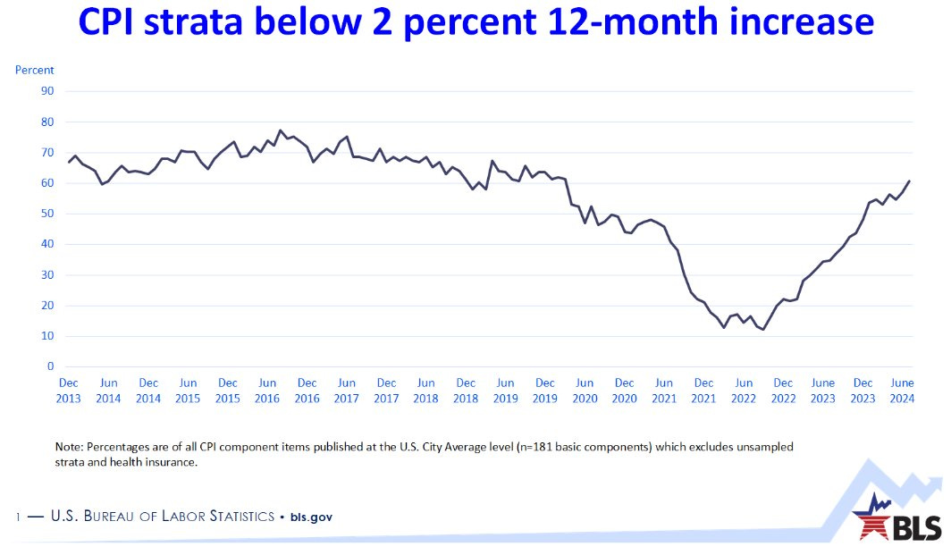 According to BLS data, more than 60% of the CPI components are now trending below the 2% mark (annualised).