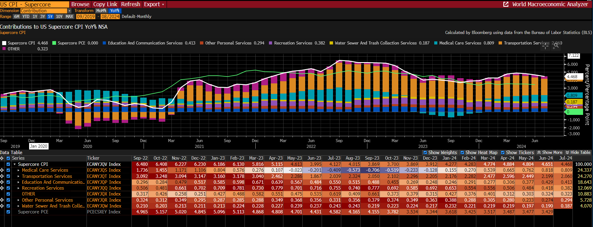 Overall, the trend continues with broad deflation, while some service components demonstrate stickiness.