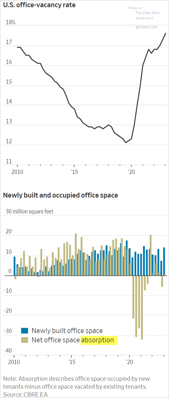 If a credit event leads to a hard landing for the US economy, the vacancy rates will likely jump to 25%-30% with a lag. It will be mayhem across the CRE space (office) in that scenario.