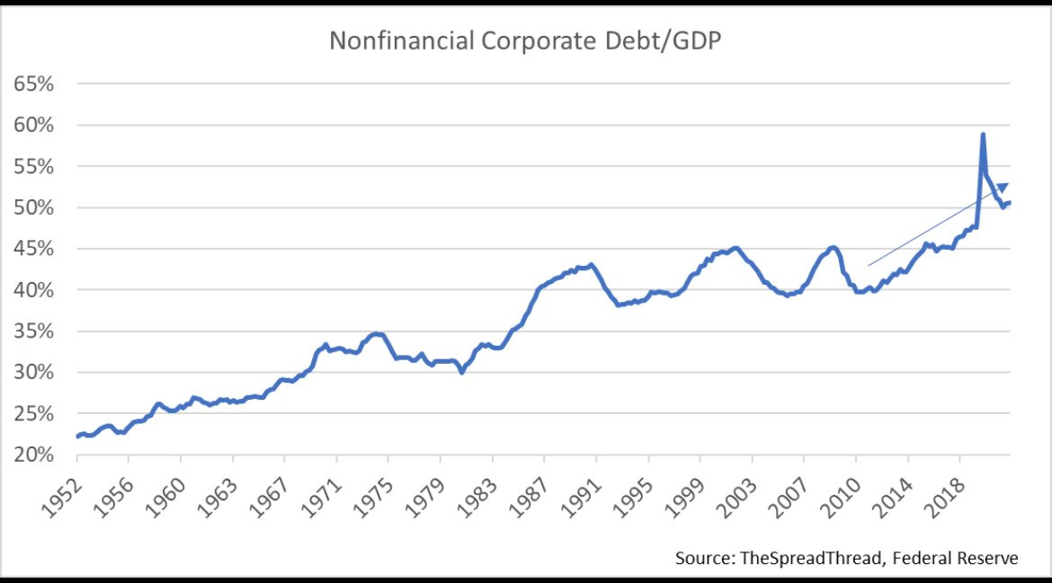 When we talk about the US, there is a notion that the corporates have delevered post the GFC; however, when we dig deep, the non-financial corporate debt as % of GDP has climbed to more than 50%.