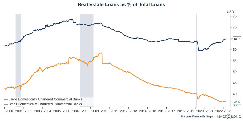 As a result, 43% of the total loan book of smaller banks is towards the CRE space, which is highly concentrated for banks that are lifelines to the US economy.