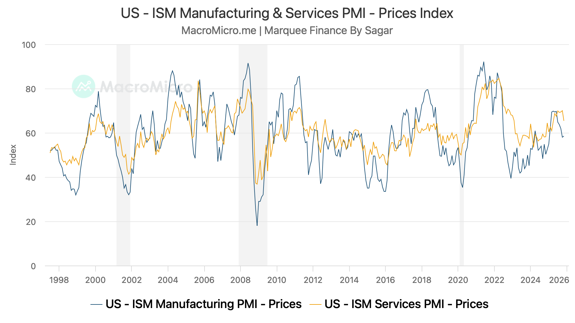 While the ISM Manufacturing Prices Paid is elevated at 58.5, we have seen some cooling in the ISM Services Prices Paid, which is now 65.4 from 70.