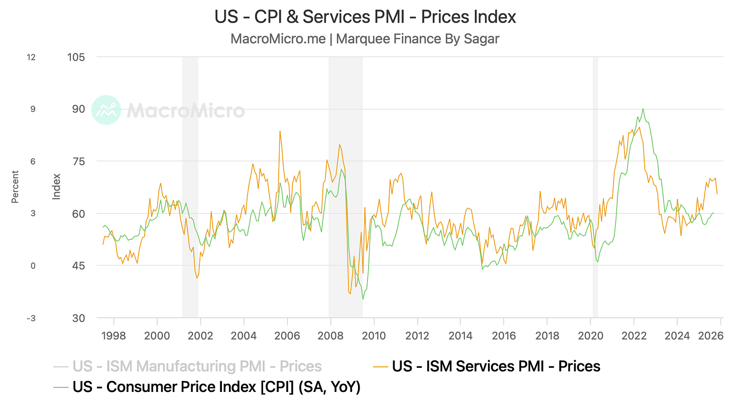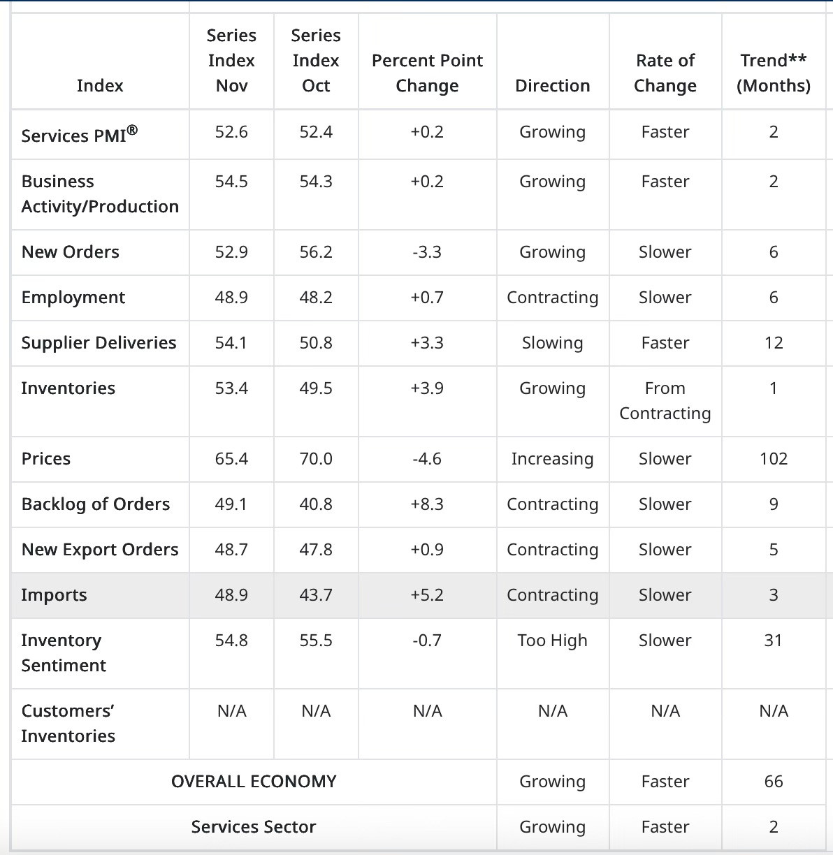 From the chart, we can conclude that the CPI might rise in Q1 as old inventories are replenished, but if the ISM Services is to be believed (and if the downward trend continues), the spike will be temporary (transitory).