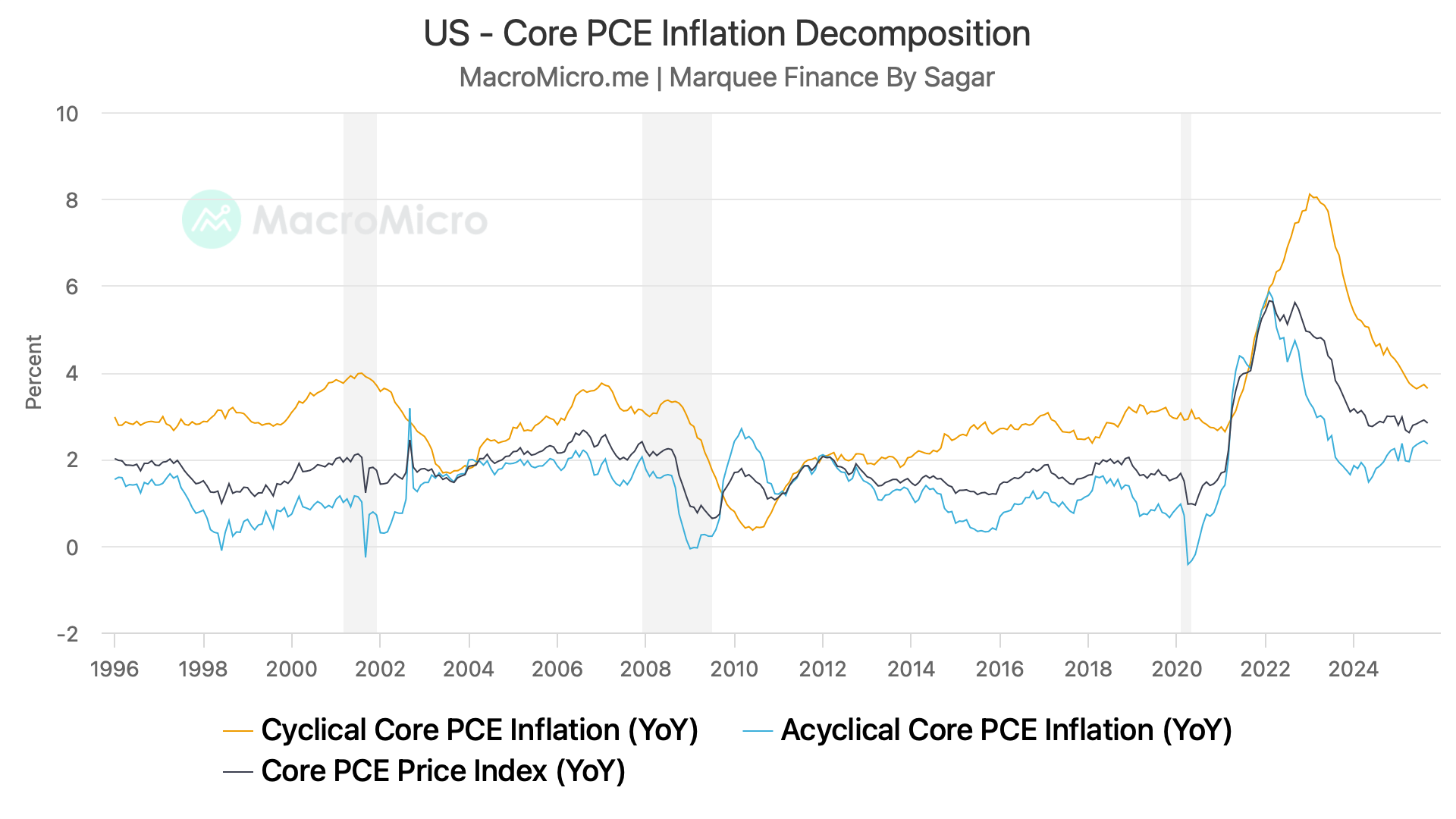 Acyclical components, on the other hand, account for around 60% of PCE and are more sensitive to industry-specific factors. These components include healthcare, financial services, clothing, etc.