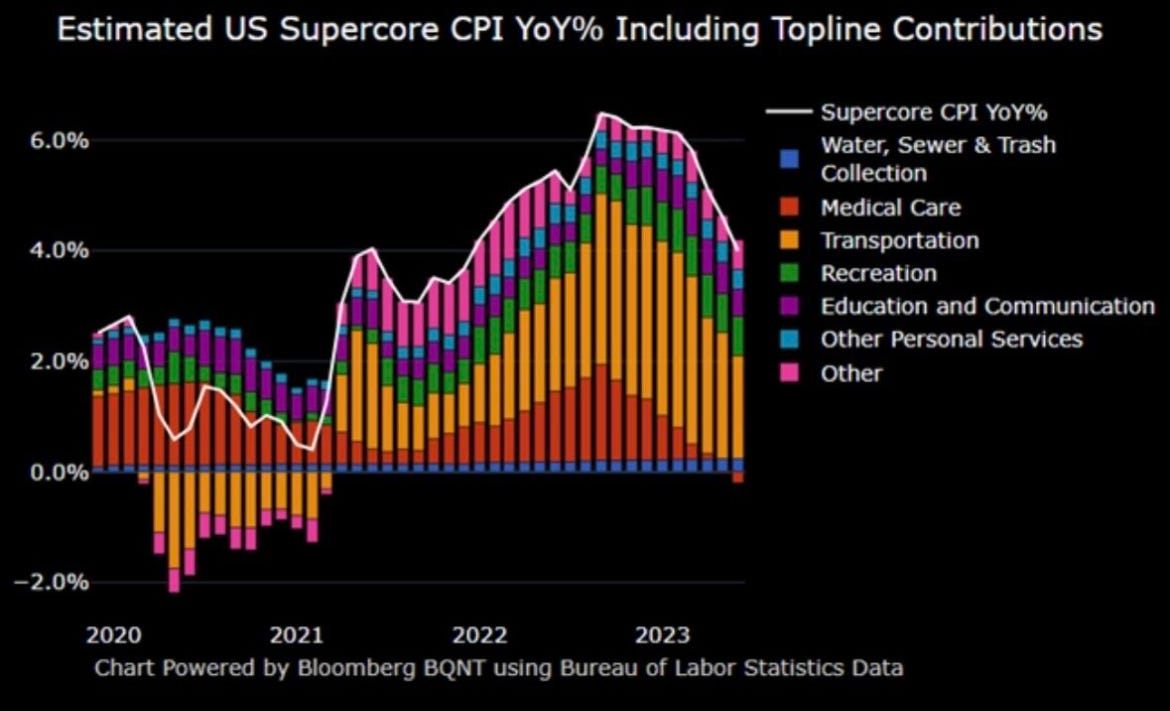 While the headline print came in at 3%, the supercore inflation, which the Fed tracks closely, also demonstrated initial signs of plateauing.