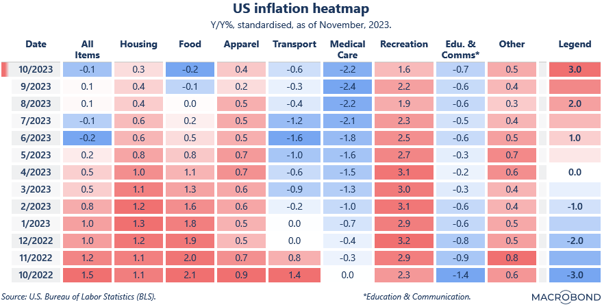 The inflation heatmap indicates that the two heads still running hot are housing (shelter) and recreation.