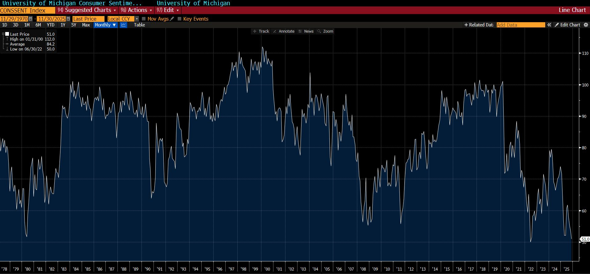 Moving on to macro, since the last two weeks, we have been highlighting the plunging consumer sentiment in the US as measured by the UMich Consumer Sentiment Index.