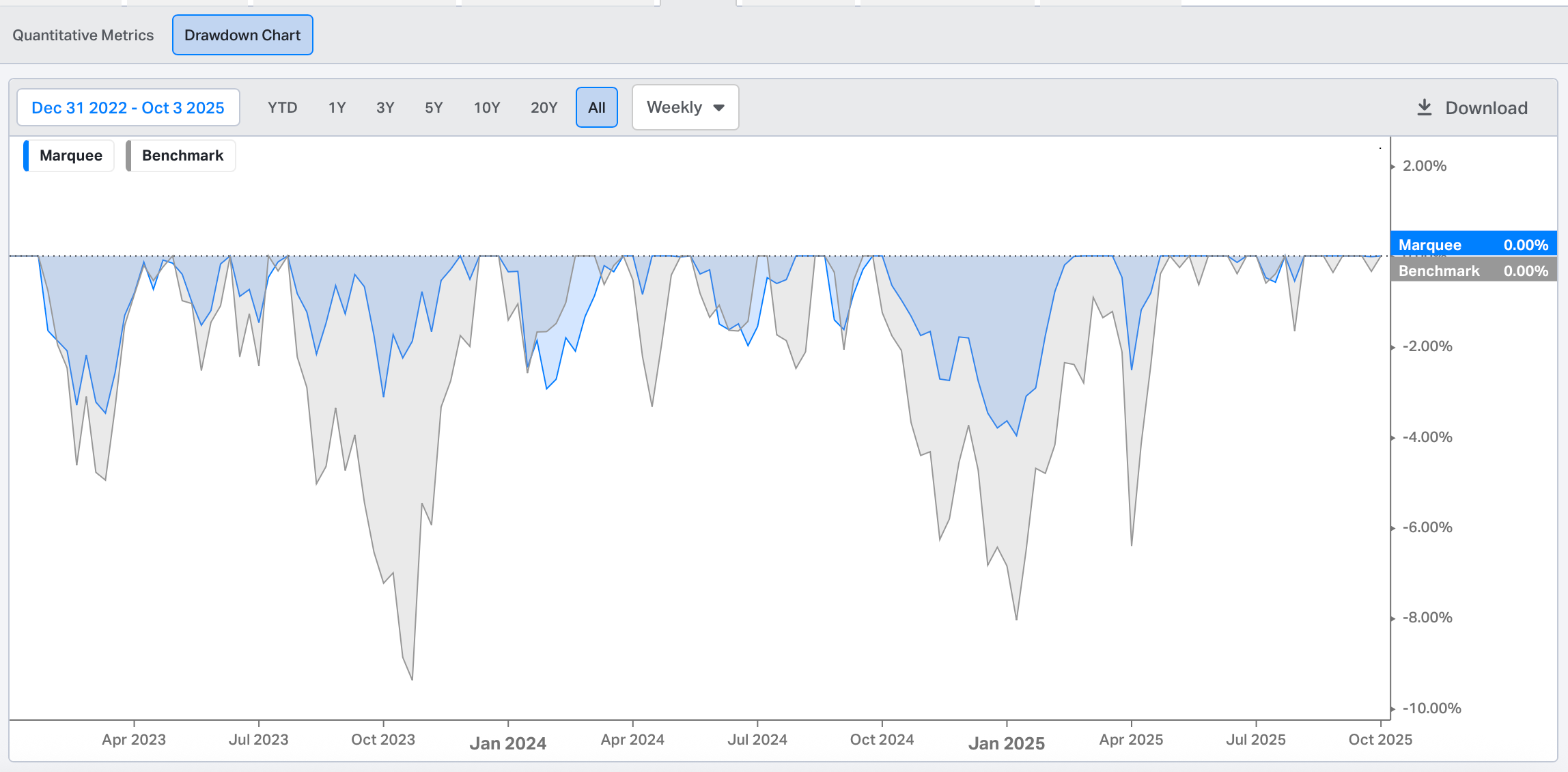 In fact, the benchmark had a massive drawdown of up to 900 bps on various occasions.