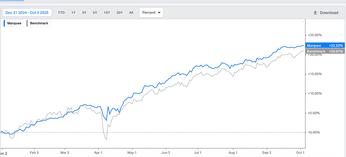 Our consistent performance continues, as the PF has touched all-time highs with a YTD return of 22.32%, outperforming the benchmark by more than 130 bps.