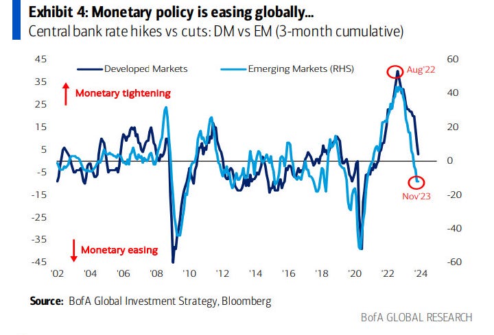 As per BofA, the current rate cuts cycle / monetary easing is led by the EM Central Banks as EMs were well insulated from the inflationary shock that the developed world suffered due to its preposterous fiscal and monetary policies post-COVID.