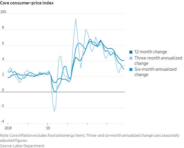 The 12-month core inflation rate came in at 4%. Furthermore, due to the lower readings in the last few months, the six-month annualized rate was down to 2.9% in November from 3.2% in October.