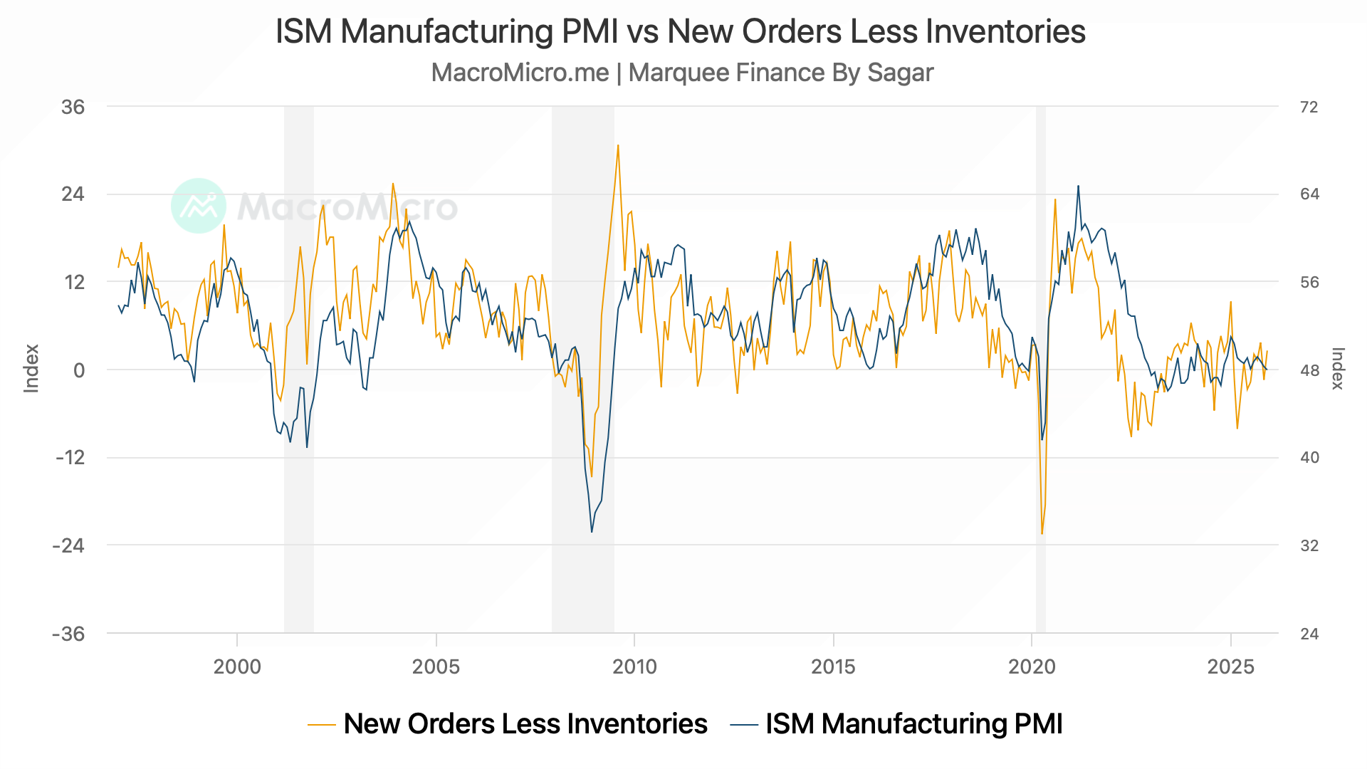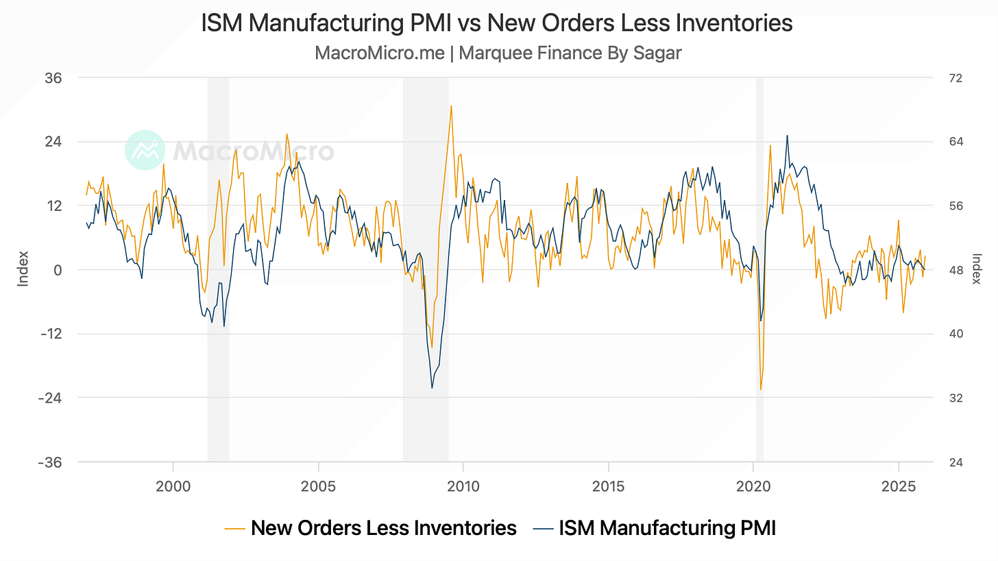 ISM New Orders Less Inventories leads the headline number.
