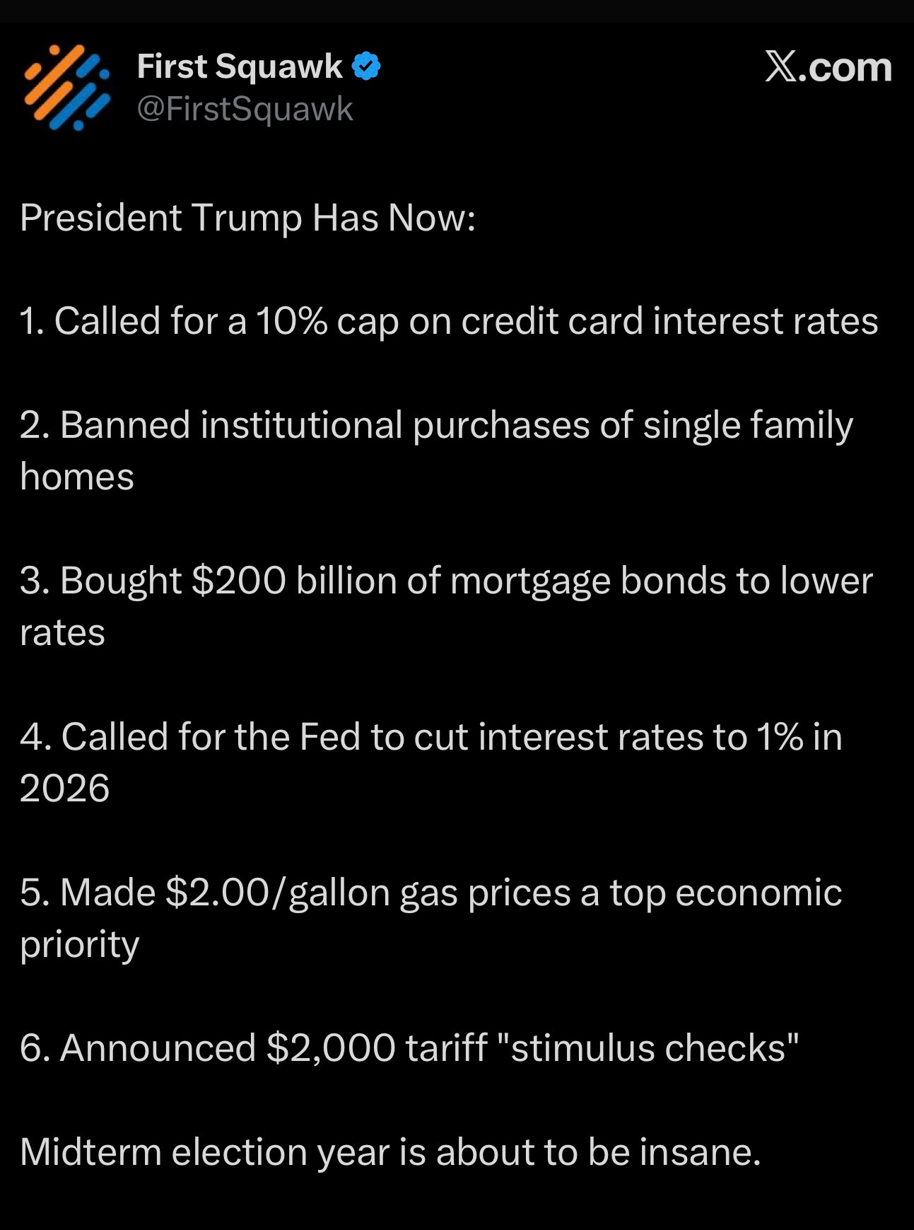 As a result, Trump is now proposing to cap credit card APRs at 10%. Although this can’t be implemented via an executive decision, lowering APR by pressurising banks will eventually choke credit and have the opposite effect to what’s desired.